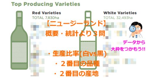 ▼問題 ①ニュージーランドの栽培面積(2020年)の比率は? A:白ブドウ - 2割 / 黒ブドウ - 8割 B:白ブドウ - 4割 / 黒ブドウ - 6割 C:白ブドウ - 6割 / 黒ブドウ - 4割 D:白ブドウ - 8割 / 黒ブドウ - 2割 ②2番目に多い栽培面積の品種(2020年)は?…