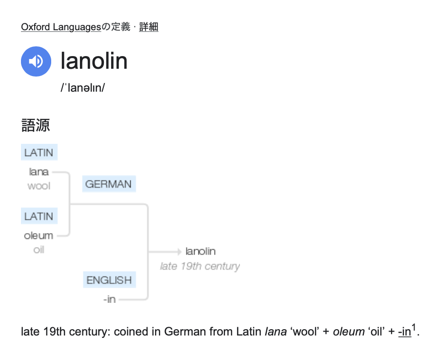 ラノリンは↓語源の通り、湿っぽい[油やロウソク感のある]ヒツジ(羊)臭さ